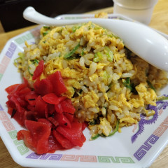 2025年4月24日(木) ラーメンのサイドに、半チャーハン&餃子の「麺定食」600円を頼みます。表題の380円は、半チャーハン単品のお値段です。 ラーメンに続いて着皿したチャーハン、傍らに乗っているのは福神漬けです。珍しいな! レンゲを入れると、それだけで分かるフワっフワのエアリーな炒め加減!調理人は相当なウデの持ち主です... 続きを見る